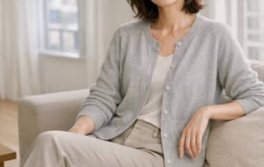 なんとなく羽織るだけだと“おば見え”?40代・50代のカーディガンは「前の開け方」で差がつく