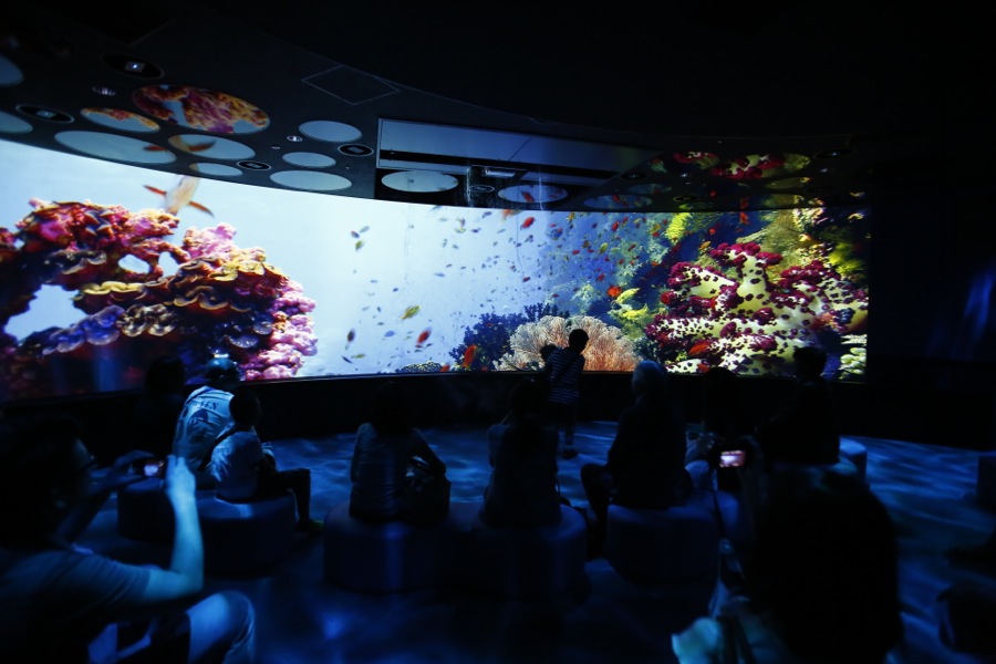 他にも、-15℃~−20℃の世界で風速15mものブリザードを体感する「EXHIBITION D -89.2」、大型円形スクリーンで深度0m〜10,994mまでの海中世界の美しさを堪能する「EXHIBITION E 10,994」など、全12種類のエキシビションが用意されている。
