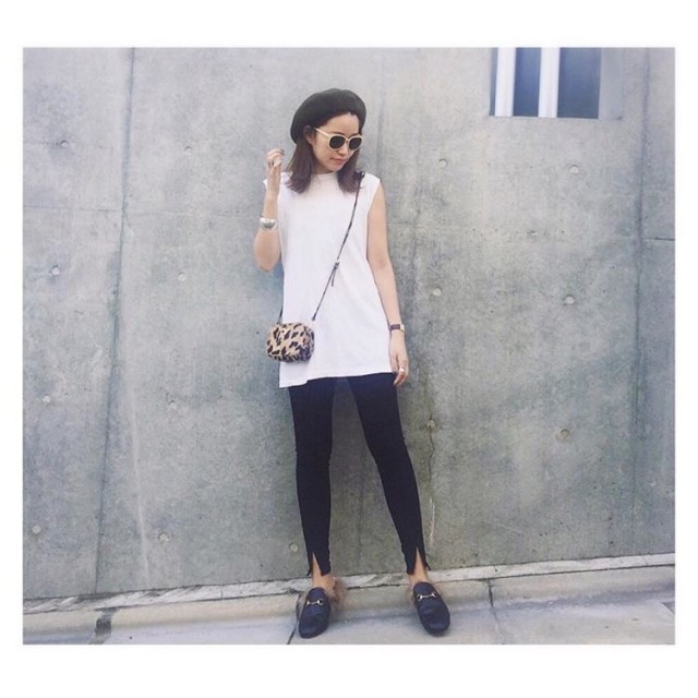 今年トレンドとなっている長め丈のトップスにスキニーパンツというミニマルスタイルにベレー帽を合わせたコーデ。バッグや靴にアクセントを持たせると大人カジュアルな雰囲気に仕上がります。