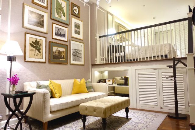 この「ガーデンルーム」はメゾネットタイプのデザインで、リビングから階段を上がったところにベッドルームやクローゼット、シャワールームがあります。