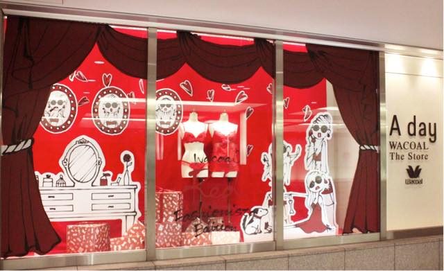 ファッションディレクター/イラストレーター・三浦大知さんのイラストを使って“赤”をテーマにしたウインドウアートや装飾ツール、そしてフォトスペースなどが展開されている「Wacoal Red Fashionista Edition」。