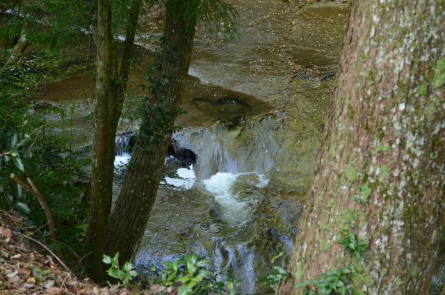 「農溝の滝」はこの場所から少し下流のところにある小さな滝を指します(下写真)。