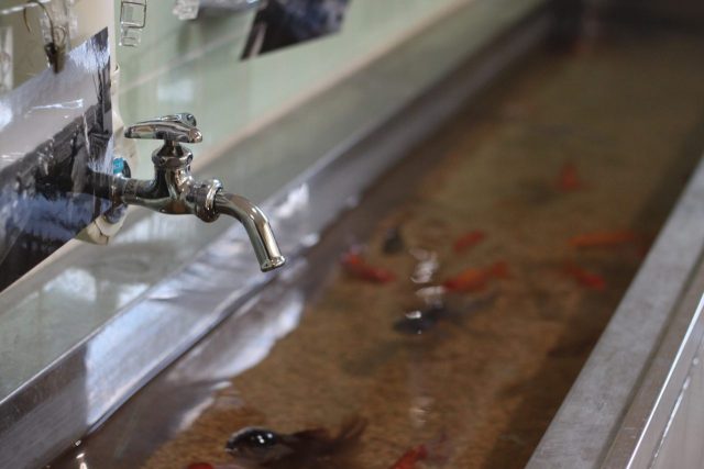 手洗い場がタッチプールや金魚を泳がせる水槽になっていたり、跳び箱の中に水槽が入っていりと、小学校で使っていたものをそのまま展示に使っているので、誰しもが小学生時代の思い出に浸れる空間となっています。