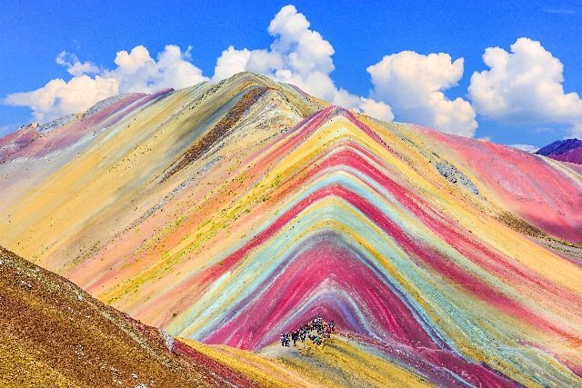 鮮やかな彩りでSNSで有名になったレインボーマウンテン(ビニクンカ)は比較的新しい観光スポット。アクセスするには標高5,000m以上の山道を片道3時間以上かけてトレッキングする必要があるので、旅行会社のツアーに参加したり、ガイドを雇ったりするのがオススメです。