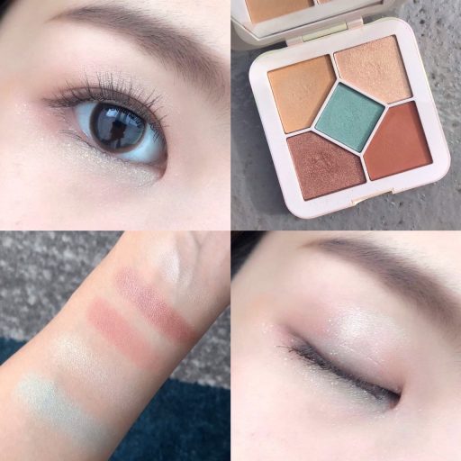 全色使ってメイクをしてみたのが上写真。一見使いにくそうなイメージのグリーンがアイメイクのポイントになって目の透明感を引き出してくれます。