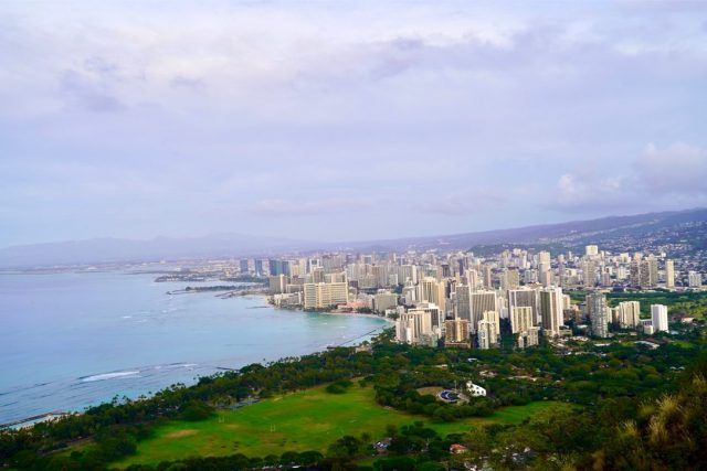 ハワイ・オアフ島のオススメスポットを聞くと必ず名前が挙がる【ダイヤモンド・ヘッド】。ワイキキのビーチからならどこからでも見え、その姿を目にすると「ハワイに来たなぁ」と実感する方も少なくないはずです。頂上からはワイキキの街並みやビーチを一望できる絶景スポットで、特に雨季(10月〜3月)は日の出を見ようと早朝から登頂する人が大勢います。
