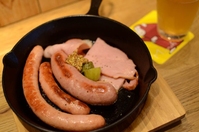 ビール工場のすぐそばにある「箕面ビール WAREHOUSE(ウェアハウス)」は、そんな箕面ビールをどこよりも早く、できたての状態で愉しめる場所。ビールと相性抜群なフードメニューも充実しています。最も人気なのは「ソーセージの盛り合わせ」。箕面の名産品である柚子を使用したソーセージなど3種類のソーセージの食べ比べができます。