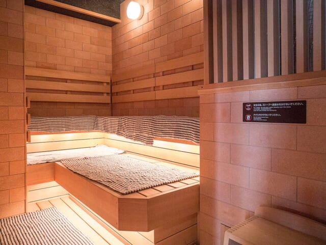 男女ともドライサウナが用意され、男湯の方が若干広い設計。サウナストーンはフィンランド産の香花石を使い、テレビもついています。ビジネスホテルとは言え、女性のサウナ利用者も多いとのことです。