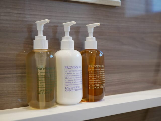 ▲シャンプー類はペリカン石鹸のプロバンシア。気に入ったら購入も可能です