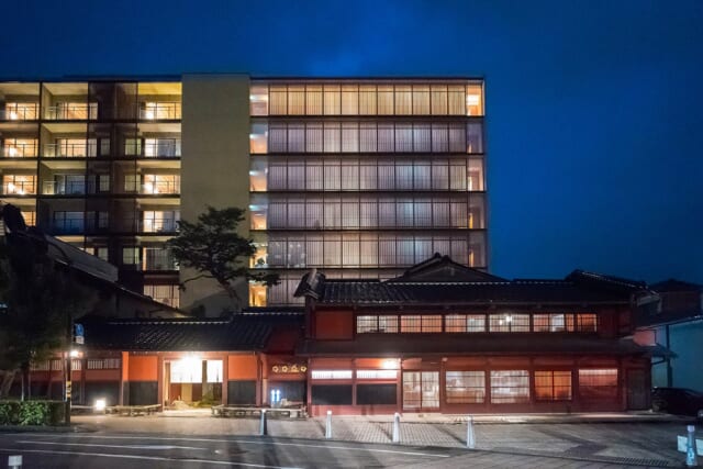 1624年創業の老舗旅館「白銀屋」の建物を受け継ぐ「伝統建築棟」は、文政年間(1818年~30年)に建てられた木造2階建ての町屋造り。その背後にラウンジや大浴場のあるモダンな客室棟が新築されました。