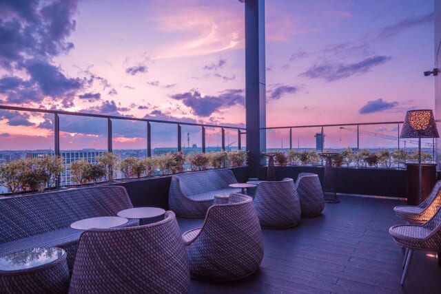 ハイアット セントリック 金沢でナイトシーンを満喫するなら、おすすめのスポットは14階にある「ルーフテラスバー」。上質な雰囲気のカウンターバーと、その名のとおり街を浮遊しているようなオープンテラスを備えます。