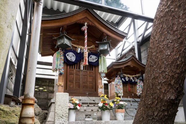 ▲縁切りと縁結び、両方の神様が同居する、松の木に隠れたパワースポット「貴船明神」。聖霊病院聖堂のすぐ近くです