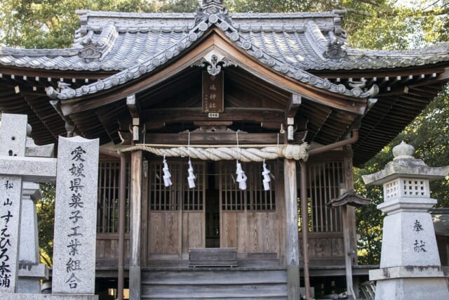 冠山には道後温泉を守護する湯神社があります。1707年の地震で温泉のお湯が止まった時、「湯祈祷」を行うと再び湧きはじめたと伝わるほどのパワースポット。今も湯祈祷が続けられ、道後の温泉を護ります。