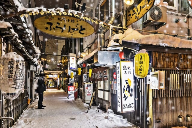 旭川には昭和の面影が残るディープな裏路地が数々残ります。5条通7丁目にある「5・7小路 ふらりーと」は人気の飲み屋街で、若鶏の半身を炭火でじっくり焼き上げたご当地グルメ「新子焼き」のお店があるほか、おすすめのお店はぜひOMOレンジャーに尋ねましょう。
