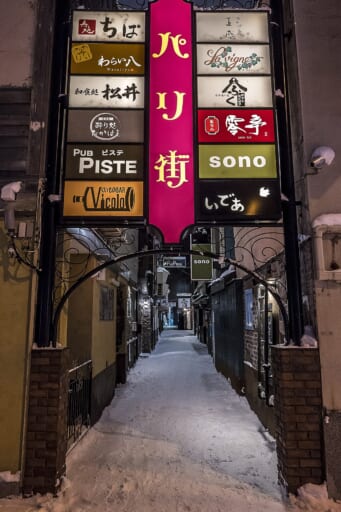 バーや寿司屋のほか、近ごろはお酒やディナーの後に食べる北海道発の「〆パフェ(夜パフェ)」のお店も登場。インスタ映えする人気スポットです。