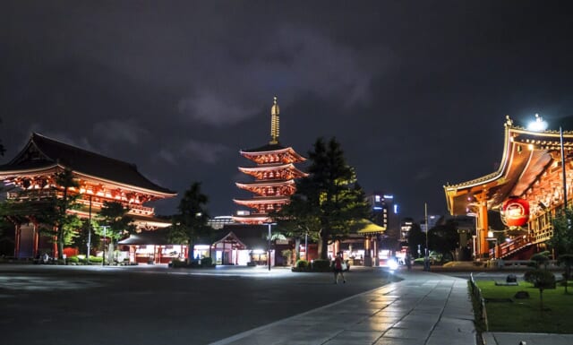 東京在住の人にもあまり知られていない浅草寺のライトアップは日没から23時まで。入場料も不要です。