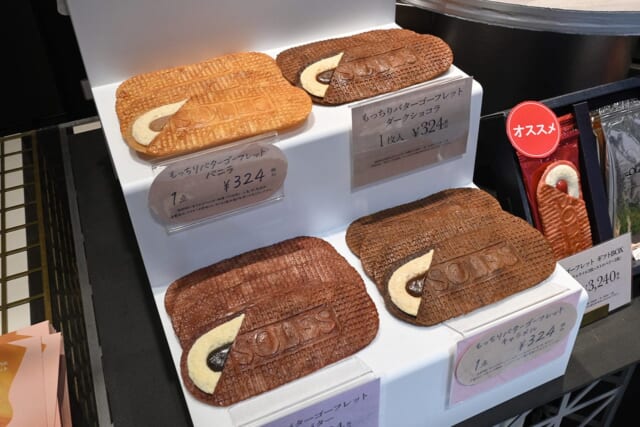 ▲「もっちりバターゴーフレット」は、バニラ、ダークショコラ、キャラメルの3種類を用意。季節の味も期間限定で登場します