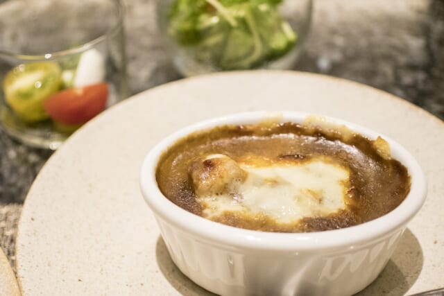 ピラフやグラタン、オムレツなど、温かいセレクトメニューを15種類も用意。オーダーすると出来立てをいただけます。なかでもグラタンやチーズカレーはオーブンで焼くので、ぐつぐつの状態でテーブルにサーブ。どれも小ぶりサイズなので様々な味を試せます。