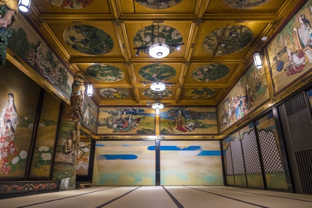 ホテル雅叙園東京は、時の名だたる日本画家が描いた壁画や天井画、木彫や、技巧を凝らした組子細工などが素晴らしいミュージアムホテル。「昭和の竜宮城」とも呼ばれ、絢爛豪華な色使いやそのあでやかさは圧倒的。さらに贅をつくした宴会場や特別室を見学できる、宿泊者限定の館内アートツアーは驚きの連続です。