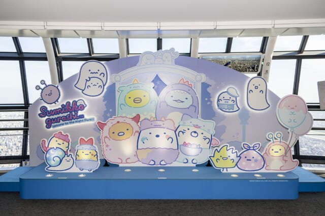 展望回廊フロア445-450は、すみっコたちの楽園。キャラクターの説明やフォトスポットはもちろん、東京を見下ろす絶景も楽しめます。