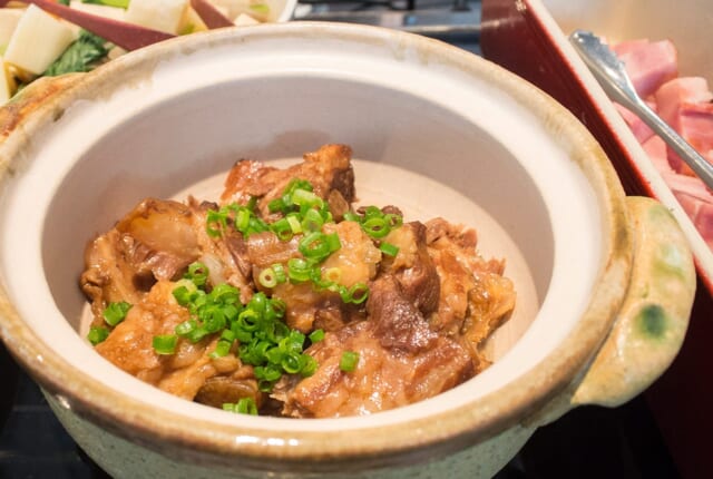 イチ押しは「豚骨のとろとろ煮込み」。十五代将軍・徳川慶喜が愛した豚肉にちなむメニューで、軟骨とともに醤油と黒糖の甘辛味で柔らかく煮込んだ逸品。圧力鍋で1時間調理した、トロットロの食感です。