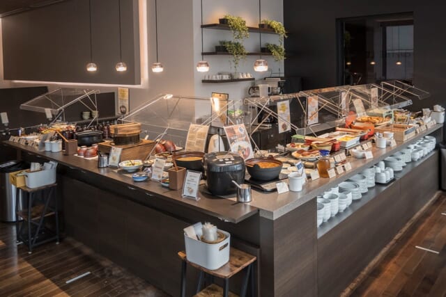 味と素材にこだわる朝食は「カフェ THE LOUNGE」の和洋食ビュッフェで6時30分から10時まで。