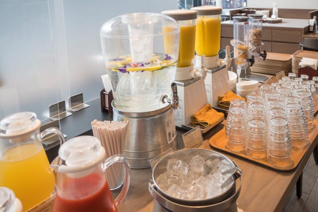 ▲ジュースはもちろん、朝にうれしいデトックスウォーターやスムージーも