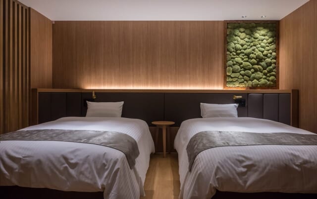 ▲入口やベッドルームなど、奥入瀬にも生息する苔の壁画が飾られます。全て本物の苔で、目を近づけると胞子体を見られることも