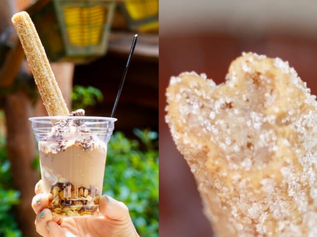 添えられたミッキーシェイプが可愛いシナモン味のチュロスと一緒に味わってみてください。
