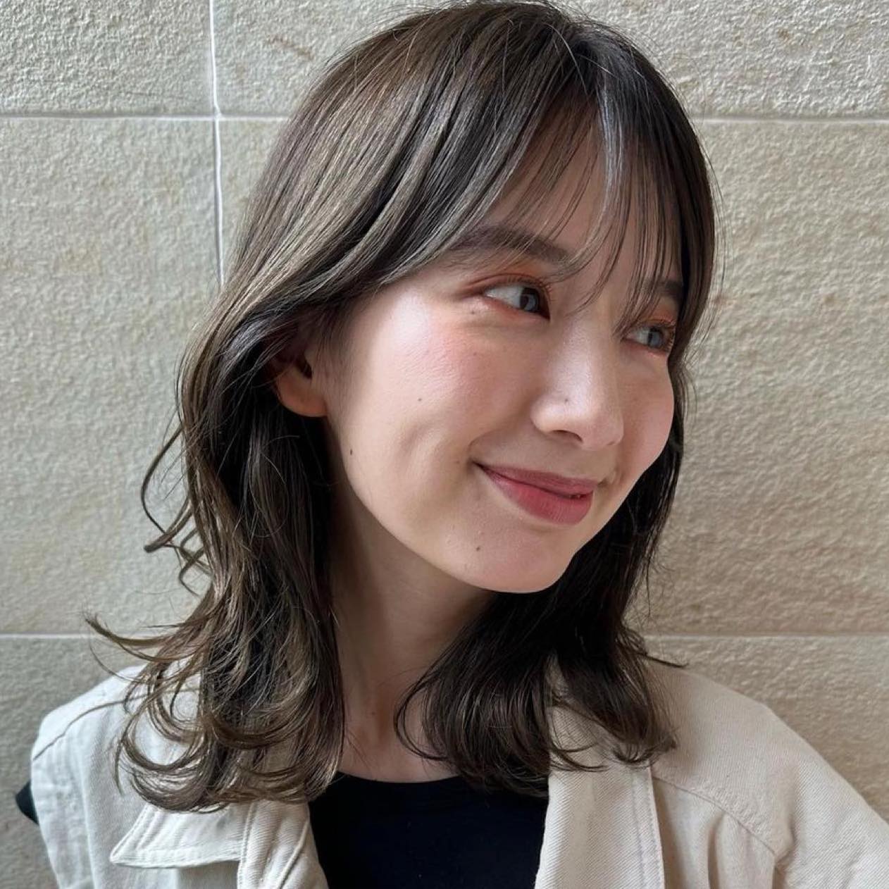 落ち着き感のある髪色を合わせて、ナチュラルかつ透明感のあるスタイルに。表情をグッとピュアな印象に見せてくれるので、好感度も自然と引き上がります。輪郭に合わせて顔周りのボリュームを調整して小顔感を強調しましょう。