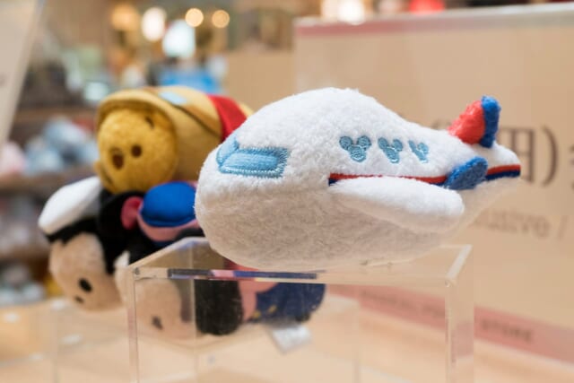 空港自動販売機の空港限定TSUM TSUMは、パイロットとキャビンアテンダント姿のミッキーとミニーや、パイロットゴーグルをつけたプーさん、そして飛行機のぬいぐるみの計4種類。どれが出てくるかは運しだい。全部集めたくなってしまうアイテムです。