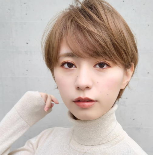 前髪を眉毛辺りで揃えるようにスタイリングして横ラインを出すとバランスの取れた印象に。なお、ショートヘアの場合はサイドに少しボリューム感を出すことで、ほんのりキュートな雰囲気を醸せます。