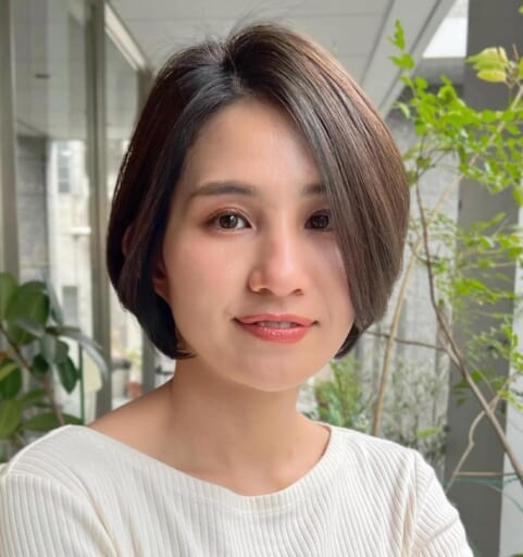 透け感のある前髪でおでこをカバーしつつ、毛先に動きを出すことで全体のバランスが整えましょう。