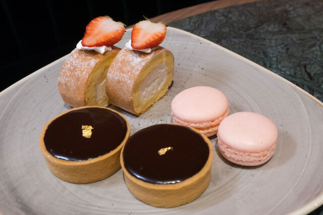▲2段目は「タルトショコラ」、「苺のマカロン」、「銀座のはちみつロールケーキ」