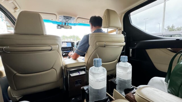 ▲今回は取材ということで、特別に広々快適な高級ワンボックスで送迎してもらいました