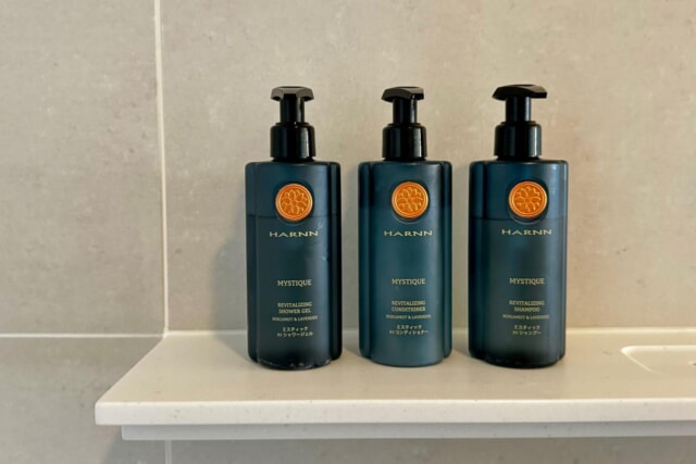 アメニティはタイの高級スパブランドHARNN (ハーン)。レモングラスの心地良い香りに癒されます。