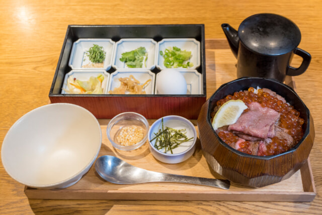 ▲旅番組でも紹介される「上州牛とイクラの贅沢ひつまぶし」