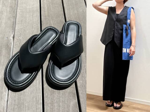 発売してすぐにリアルバイした「プラットフォームトングサンダル」は、毎日のように愛用できる一軍サンダル。断然フラットな気分の今夏にぴったりです。