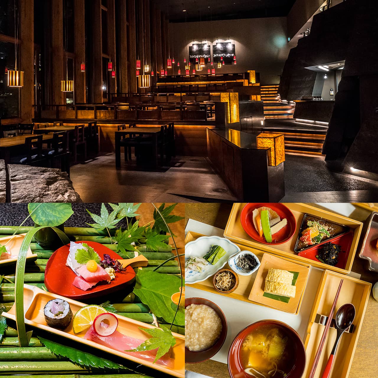 食事は宿のメインダイニングでいただくほか、インルームダイニングや商業施設「ハルニレテラス」など滞在に合わせて選べます。今回は「集いの館」にある「日本料理 嘉助」で季節の懐石料理「山の懐石」をいただきました。