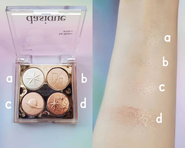 おすすめの使い方は、bとcを混ぜてまぶたの中央にのせるて立体感を演出すること。また、涙袋にはcがおすすめです。目元にツヤ感があるだけでも光を集めて明るい印象へ導いてくれるので、ぜひアイメイクに取り入れてみましょう。