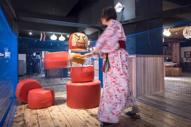 江戸時代から伝わる、正月などの縁起物の玩具 “だるま落とし” ですが、高さ約2mの巨大な「でっただだるま落とし」を用意。上にあるだるまが落ちないようにコマを弾き飛ばすのですが、これがなかなか難しい。コツは、願いを込めて思いっきり叩くこと。誰でも無料で参加できて、期間は2025年3月31日(月)まで。毎日10時から12時まで楽しめます。