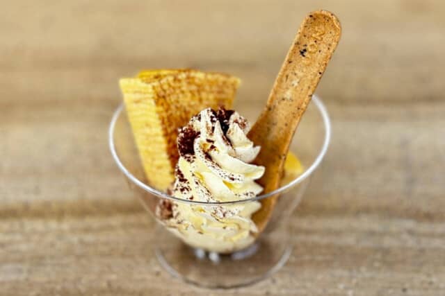 「ゴンドリエ・スナック」では、ユーハイムのバームクーヘンを使用して「バウムクーヘンのティラミス仕立て」を提供。