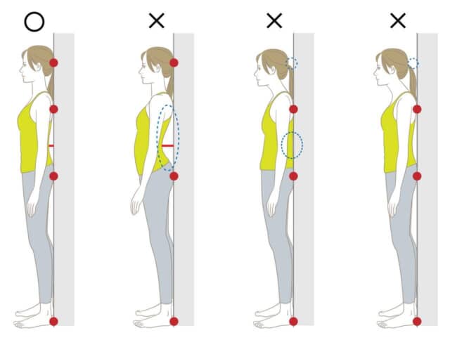 ▲かかと・お尻・肩甲骨・後頭部を壁にピタッとつけなければ、効果を得られないので注意!