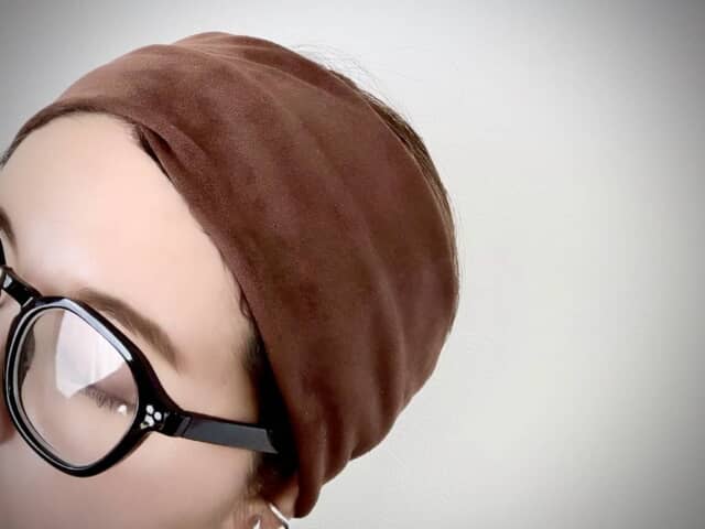 カジュアルなリブ素材よりも、スエードライクな質感が秋らしくておすすめ。太めの幅が顔周りをすっきりと見せ、ブラウンの色味が黒よりも柔らかく大人シックに仕上げます。スウェットやニットに合わせるだけで、抜け感のあるヘルシーさがプラスされ、コーデの鮮度がアップしますよ。