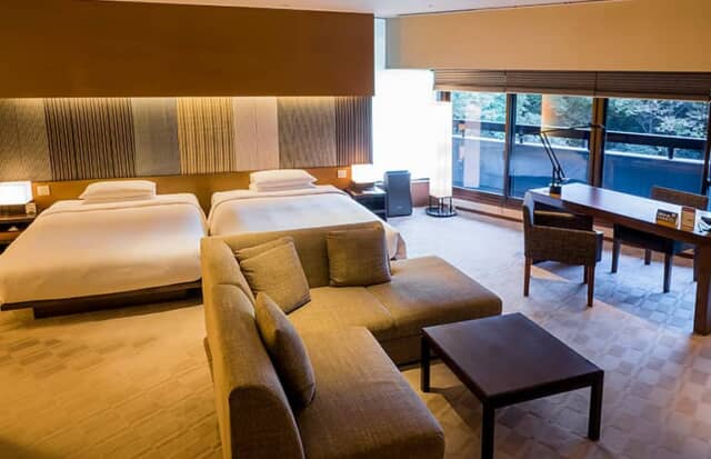 客室はソファーや大きなデスクも置かれ、ゆったりと過ごせる広さです。