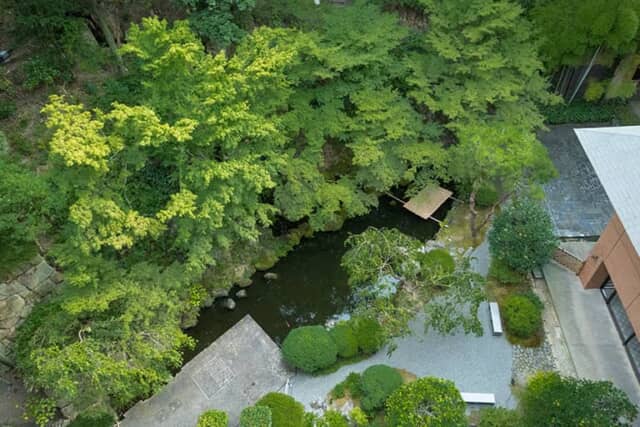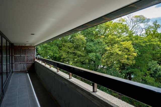 日本庭園側のベランダからは、錦鯉の泳ぐ池を見下ろすことができます。紅葉の季節は色づく木々を楽しめるそうです。