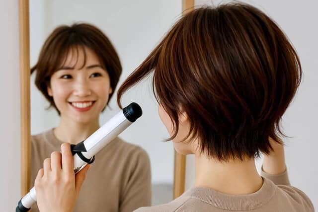 レイヤーショートを若々しく見せるには、トップのボリュームが重要。根元を立ち上げるようにドライヤーで乾かすだけでも、ふんわり感が出て印象が大きく変わります。