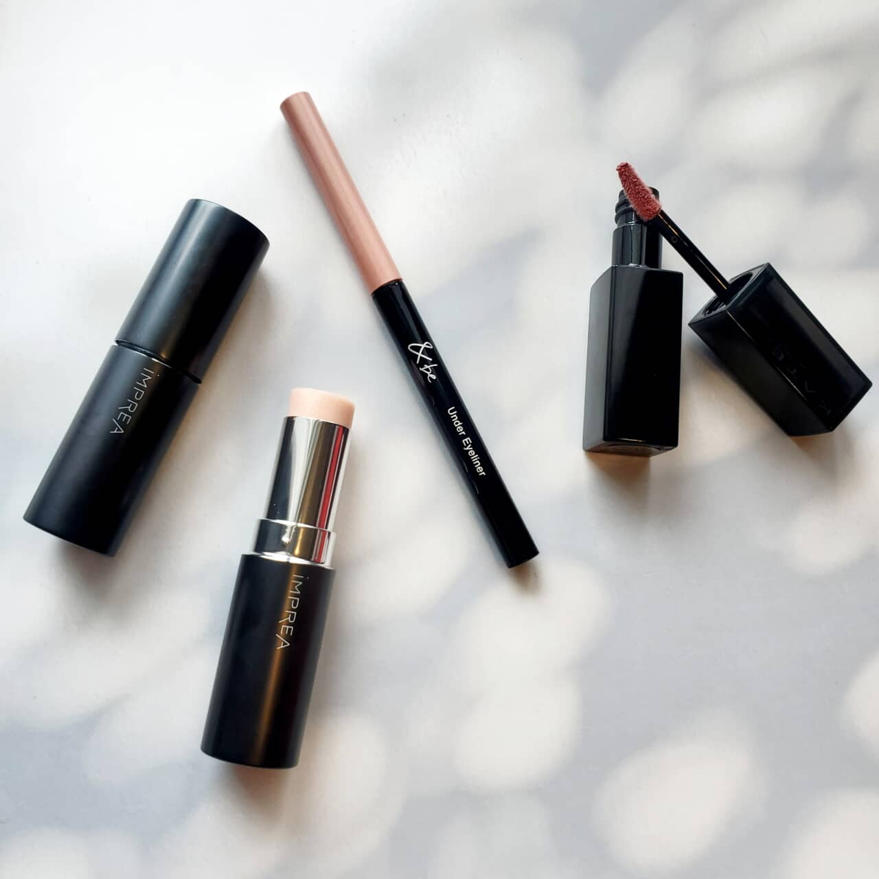 スクワランやアミノ酸、ローズヒップオイルなどの美容成分を配合したインプレアのスティック状ハイライト「ハイライトセラム」。スキンケア後のような自然なうるおい感を与え、ひと塗りで濡れたようなツヤを再現します。