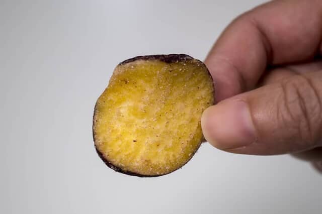 東京駅のじゃがボルダは、Calbee+と東京ばな奈がコラボレーションした日本で唯一のお店。さつまいも商品『炙りおさつチップス』は、和食の名店「広尾 小野木(おのぎ)」が監修。蔵で熟成させて甘さを増した “紅天使” を使い、独自の炙る(A)と(T)うまい(U)「おさつチップスATU製法」を採用。味に奥行きを加えたおさつチップスは、お芋の甘みを存分に楽しめます。※紅天使はカルビーかいつかスイートポテト株式会社の登録商標です