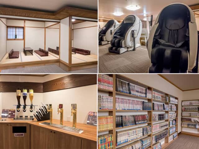 大浴場を出ると湯上がりラウンジがあって、畳敷きの小上がりやマッサージチェア、驚くほどのタイトルをそろえたまんがコーナーがありました。